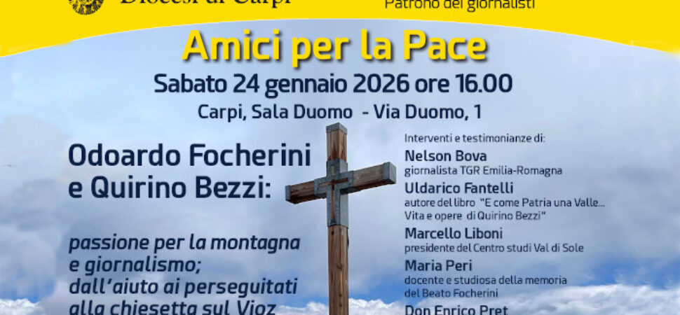 Festa del patrono dei giornalisti: sabato 24 gennaio, alle 16, in Sala Duomo a Carpi, incontro “Amici per la Pace. Continua