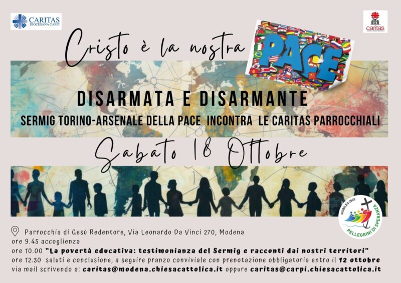 Sabato 18 ottobre, dalle 9.45, presso la parrocchia Gesù Redentore a Modena, si terrà l’incontro di formazione per le Caritas parrocchiali organizzato dalle Caritas diocesane di Modena-Nonantola e di Carpi. Sul tema della povertà educativa interverranno i rappresentanti del Sermig di Torino, e a seguire saranno proposte due testimonianze dell’attività svolta al riguardo dalla Caritas a Modena e a Carpi. Un momento condiviso di riflessione … Continua a leggere