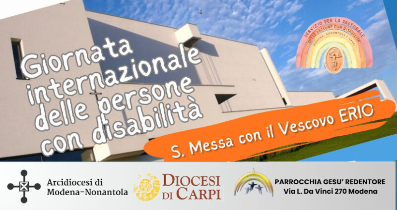 Sarà Modena, presso la parrocchia di Gesù Redentore (via L. Da Vinci, 270), ad ospitare quest’anno la celebrazione interdiocesana per la Giornata Internazionale delle persone con disabilità che sarà presieduta dal vescovo Erio Castellucci. L’appuntamento è per mercoledì 3 dicembre alle ore 17.30 ed è curato dal Servizio per la pastorale delle persone con disabilità diretto dal diacono Ermanno Lotti. Con una formula ormai consolidata … Continua a leggere »
