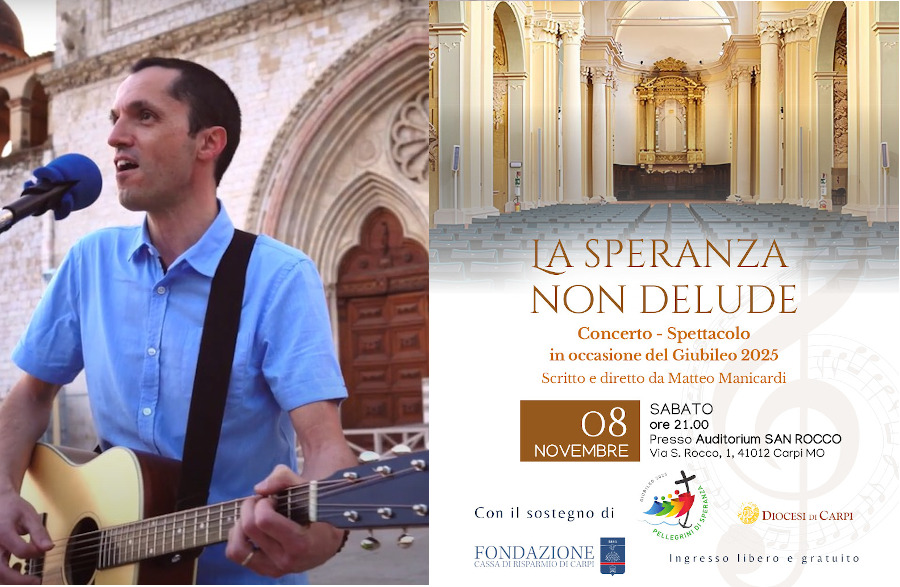 Sabato 8 novembre, alle 21, presso l’Auditorium San Rocco a Carpi, si terrà il concerto spettacolo promosso dalla Diocesi di Carpi in occasione dell’Anno Santo giubilare, scritto e diretto dal cantautore Matteo Manicardi.