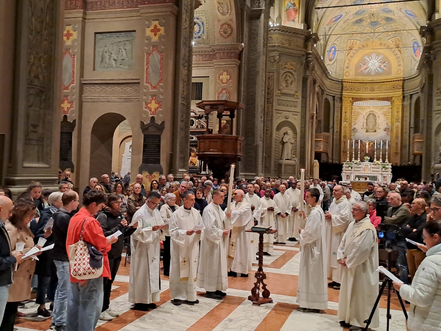 “Diamo una mano a Dio a realizzare il suo sogno: un mondo di pace”. È l’appello del vescovo Erio Castellucci al termine della meditazione nel corso della veglia di preghiera che si è svolta sabato 4 ottobre in Cattedrale a Carpi promossa dalle Diocesi di Carpi e di Modena-Nonantola. Un primo momento interdiocesano all’interno del cammino verso l’unificazione, vissuto nella comunione rispondendo alla chiamata del Vescovo. Cattedrale gremita, tanti giovani, numerosi sacerdoti per iniziare a costruire il “pentagono della pace”, come si legge nella lettera pastorale di monsignor Castellucci per l’anno 2025-2026.
